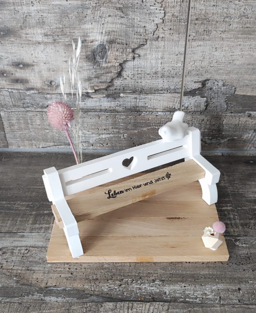 Miniatur Bank mit Spruch